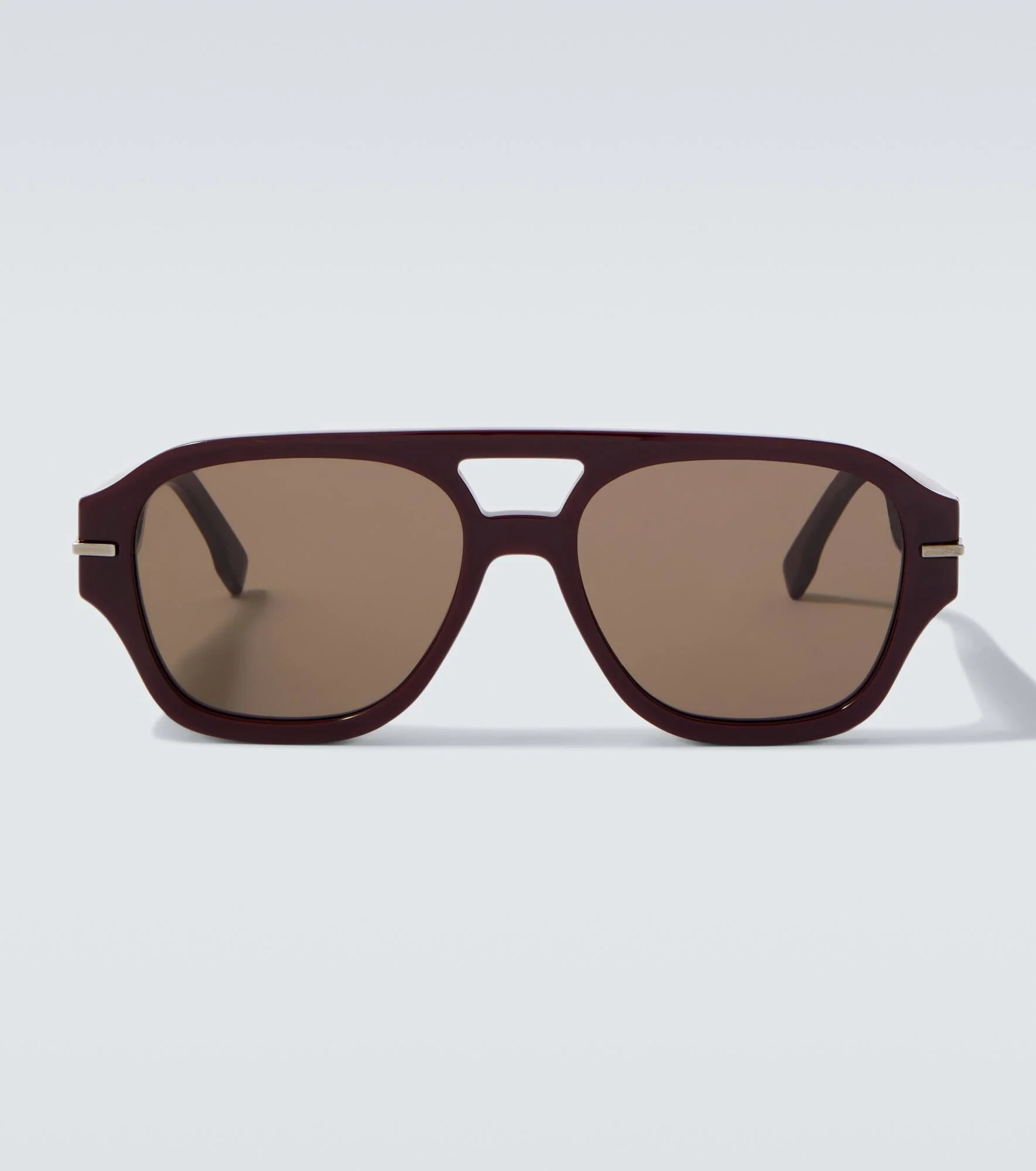 These Fendigraphy sunglasses are defined by a sleek construction and distinctive aviator frames. Fendi completes the design with signature silver-toned logo lettering on the temples. Product Details - Frame material: acetate - Frame color: red - Lens filter category 3 - Lens color: brown - Made in Italy - Includes: cleaning cloth, case - The color of the case may vary - Item number: P01104500 Size & Fit - Lens width: 55mm-2.15" - Bridge size: 17mm-0.65" - Earpiece length: 145mm-5.7"