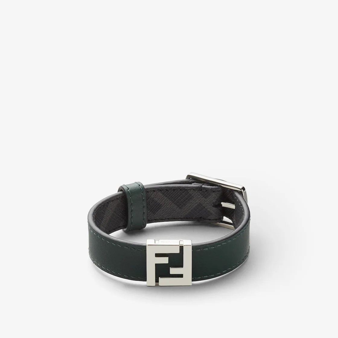 Reversible bracelet made of black FF Canvas with metal FF and buckle fastening. Lined in dark green leather. Palladium-finish metalware. Made in Italy Composition: 100% brass, 100% calf leather, back: 49% polyurethane, 28% cotton, 23% polyester Product Code: 7AJ682AFCBF1U9C Product Care: The product you have purchased may be embellished with a precious metal top or varnish and may also feature appliques, gemstones (in various shades of the same color), crystals, plexiglass or resin. The mixture of materials and the special details give this product its unique character. To best maintain the product’s appearance over time, avoid contact with sea water, spa water, lacquers, perfumes, solvents, chemicals and abrasive materials. If necessary, clean with water and a neutral soap and/or polish with a dry microfiber cloth.