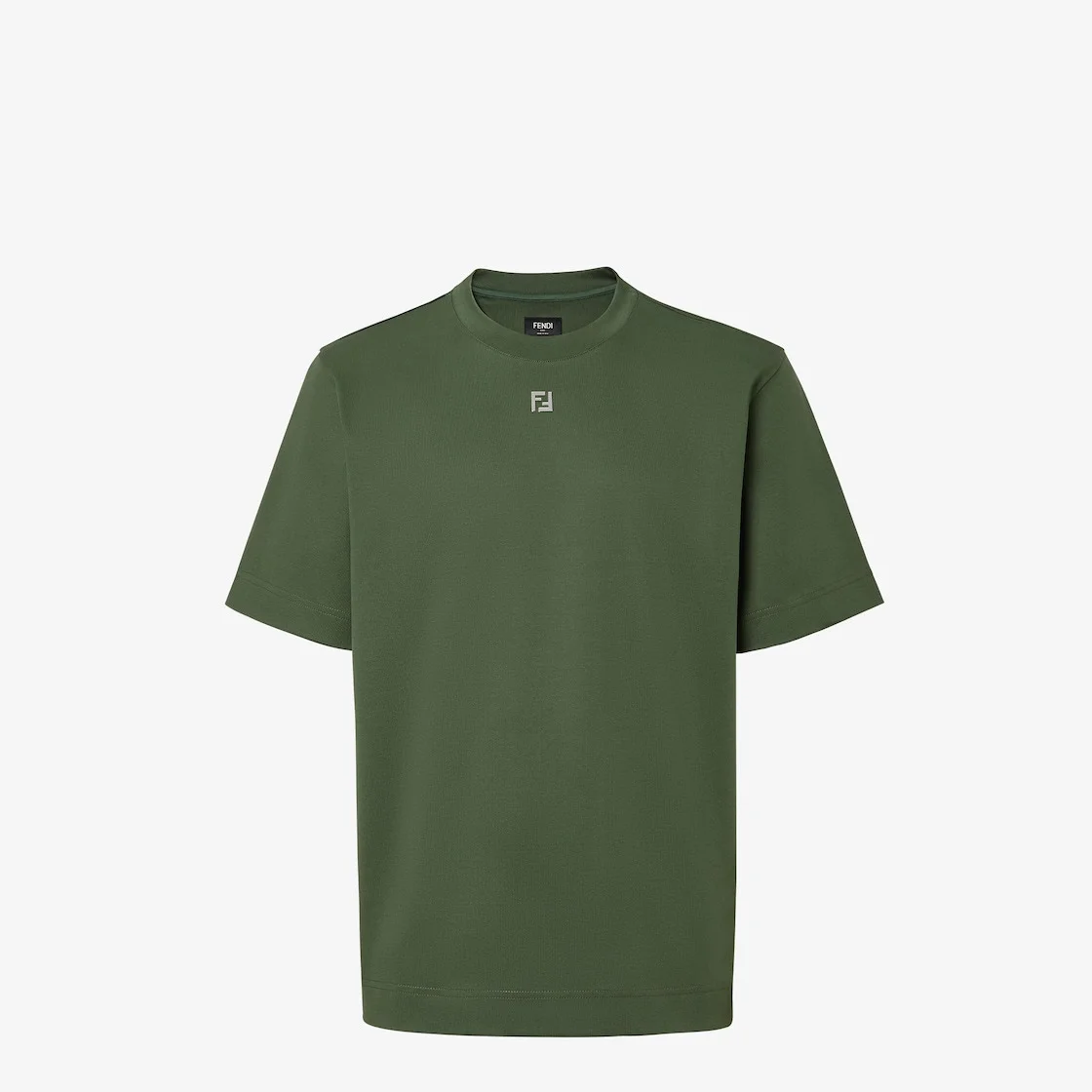 Short-sleeved, crew-neck, oversized T-shirt. Made of pure cotton in green. Customized with a palladium-metal FF logo on the front. Made in Italy Composition: 100% cotton Fit: Loose Size worn: 48 IT. The model is 179 cm tall Product Code: FY0936ARYYF083B