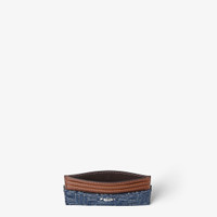 Card holder with six slots and flat central pocket. Made of blue denim-effect FF Jacquard with a brown leather insert. Metal Fendi Roma logo with a palladium finish. Made in Italy Composition: 100% cotton, 100% calf leather, inside: 53% cotton, 47% polyurethane Product Code: 7M0164AUGOF1SCG