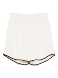 FF-jacquard track shorts Highlights - White - Elasticated waistband - Two side inset pockets - Contrasting trim Made in Italy Composition Polyester 100% SIZE & FIT Model measurements Height 6 ft 0 in(1.84 m) Bust/Chest 37.79 in(96 cm) Hips 37 in(94 cm) Waist 31.49 in(80 cm) FittingInformation Designed for relaxed fit, offering a comfortable loose fit over the leg The elasticated waist allows for a comfortable fit Made from a midweight non-stretch fabric, this piece offers minimal elasticity when worn