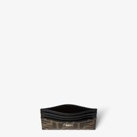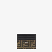 Card holder with six slots and flat central pocket. Made of black leather. Trimmed with brown and tobacco jacquard FF fabric details. Palladium-finish metal Fendi Roma lettering. Made in Italy Composition: 100% calf leather, 62% polyester, 33% cotton, 5% resins Product Code: 7M0164ALWKF0L3T