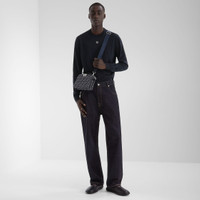 Regular-fit crew-neck pullover. Made of navy blue wool yarn. Customized with a small palladium-metal FF logo applied on the chest. Embellished with ribbed edges. Made in Italy Composition: 100% fleece wool, 1 button: mother of pearl Size worn: 48 IT. The model is 186 cm tall Product Code: FZX091AU84F0ZNZ