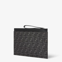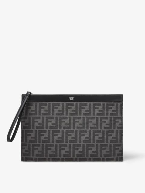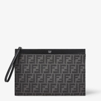 Medium-sized flat pouch with zipper. The item, made of black and gray FF jacquard fabric, is part of the collection curated with designer Stefano Pilati. Trim and bracelet zip pull in black leather. Palladium-finish metalware. Made in Italy Composition: 67% polyester, 14% cotton, 12% resin, 7% elastane, 100% calf leather, inside: 63% cotton, 34% polyester, 3% acrylic Product Code: 7N0134AFBVF1IKJ