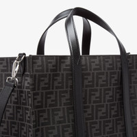 Spacious shopper made of recycled jacquard fabric with FF motif in gray and black. Features a fabric-lined internal compartment, inner zipper pocket and palladium-finish metalware. Can be carried by hand or on the shoulder thanks to the two leather handles and the adjustable, detachable leather shoulder strap. Made in Italy Measurements: - Height : 35 cm - Depth : 19 cm - Width : 41 cm - Weight : 1.2 kg Composition: 62% Polyester, 33% Cotton, 5% Resin, 100% Calfskin, interior: 63% Cotton, 34% Polyester, 3% Acrylic Product Code: 7VA390AG0MF0NPN