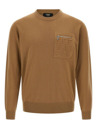 embossed-pocket wool sweater Highlights - Beige - Crew neck - Long cuffed sleeves - Zip closure - Embossed ff logo pocket - Wool knit Made in Italy Composition Virgin Wool 98%, Polyamide 2% SIZE & FIT FittingInformation Designed for a regular fit, offering a comfortable loose fit throughout the body Made with a midweight knit, this piece offers some stretch Washing instructions Read Manufacturer Guidelines