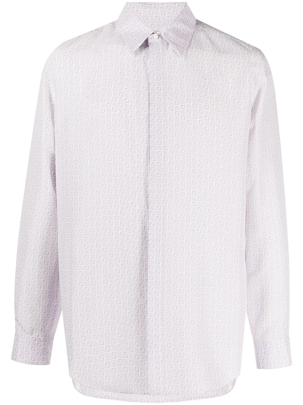 FF-print silk long-sleeve shirt lilac silk FF-logo print classic collar concealed front button fastening long sleeves buttoned cuffs curved hem Made in Italy Composition Outer: Silk 100% SIZE & FIT Model measurements Height 6 ft 1 in(1.85 m) Bust/Chest 39.76 in(101 cm) Hips 36.61 in(93 cm) Waist 27.95 in(71 cm) Washing instructions Dry Clean Only