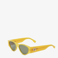 Oversized oval FF Squared glasses in opalescent yellow acetate. Wide temples with palladium-color metal FF appliques and embossed FF motif on the inside. Khaki green lenses. Made in Italy Composition: 100% plastic Product Code: FOL576V1PF1RWI Product Care: Wash your eyeglasses every day with warm water and a pH-neutral soap.Do not use alcohol, aggressive chemical products or disinfectant wipes and do not dry them with paper or other cloths that could scratch them or leave streaks.Dry with a clean microfiber cloth.After use, always keep your eyeglasses in their case.