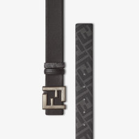 Reversible belt with thin FF Squared buckle. Made of smooth matt black leather. Black FF canvas lining. Brushed ruthenium-finish metalware. Made in Italy Composition: 100% calfskin, inside: 49% polyurethane, 28% cotton, 23% polyester Product Code: 7C0541ASIWF1DYM