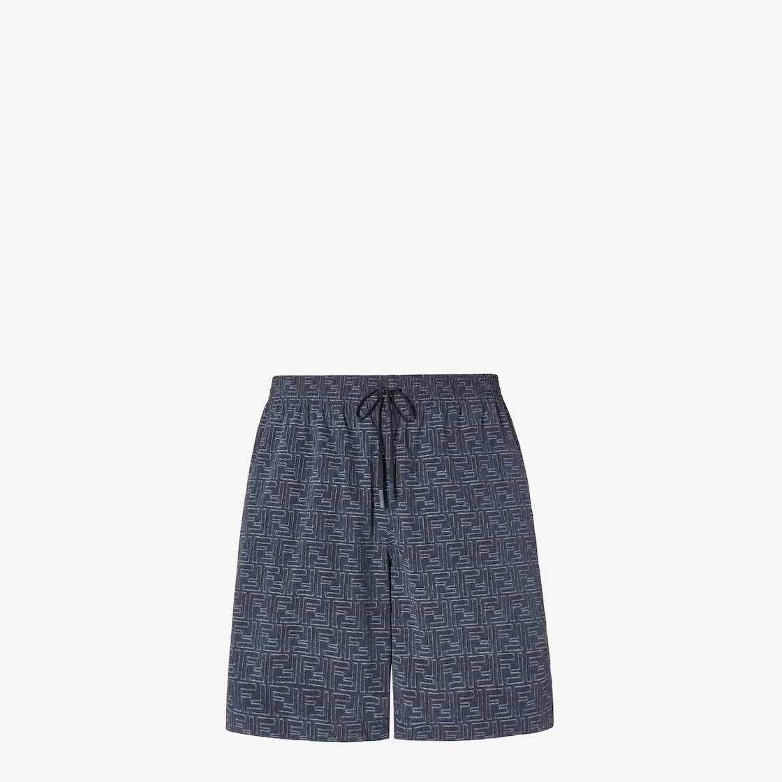 Swim shorts with elastic waistband and drawstring. Flap pocket on the back. Made of nylon with an all-over FF print in a blue jeans color. Made in Italy Composition: 92% polyamide, 8% elastane Product Code: FXB134AV65F0RU7