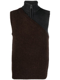 panelled ribbed zipped vest Highlights - Medium grey - Cedar brown - Wool blend - Ribbed detailing - High neck - Front zip fastening - Sleeveless - Straight hem Made in Italy Composition Wool 53%, Alpaca 33%, Polyamide 12%, Elastane 2% SIZE & FIT Model measurements Height 6 ft 2 in(1.88 m) Bust/Chest 36.61 in(93 cm) Hips 35.03 in(89 cm) Waist 27.95 in(71 cm) FittingInformation Designed for a slim fit, offering a comfortable fit that sits just away from the body Made with a midweight knit, this piece offers some stretch This piece fits true to size – take your usual size
