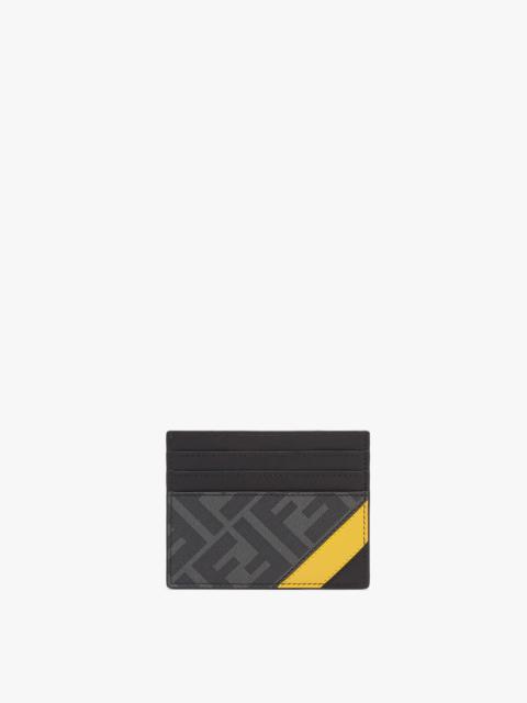 Continental wallet with flap. Flat pocket on back. Interior equipped with cardholder slots, a spacious gusseted compartment for bills and a zip pocket. Made of gray textured weave fabric with FF motif. Embellished with black leather insert and inlaid detail in yellow. Black leather lining. Made in Italy Composition: 45% Cotton, 40% Polyurethane, 15% Polyester, embroidery: 100% Calfskin, inside: 100% Calfskin, 61% Cotton, 32% Polyester, 7% Polyurethane Measurements: - Height: 9.5 cm - Depth: 2 cm - Length: 19 cm Product Code: 7M0264A9XSF0R2A