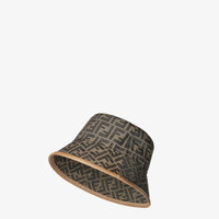 Bucket hat made of jacquard FF fabric. Embellished with beige leather edges. Made in Italy Composition: 65% polyester, 35% cotton, 100% sheep leather, 100% cotton Product Code: FXQ801ALHDF0VAT
