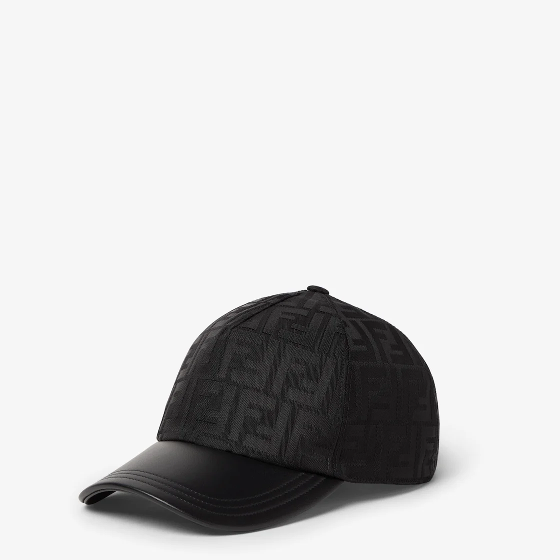 Baseball cap with semi-stiff peak. Velcro closure at the back. Made of black nylon with FF Jacquard. Embellished with matching leather peak. Made in Italy Composition: 100% polyamide, leather: 100% sheep leather, lining: 100% cotton Product Code: FXQ768AVPDF0QA1