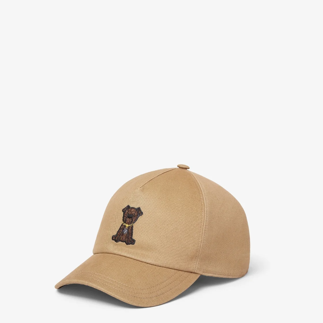 Baseball cap with semi-stiff peak. Velcro closure at the back. Made entirely in dark blue canvas. Customized with brown FF embroidery inspired by Creative Director Silvia Venturini Fendi’s dog Ito. Made in Italy Composition: 100% cotton, lining: 100% cotton Product Code: FXQ133AVPNF1NI8