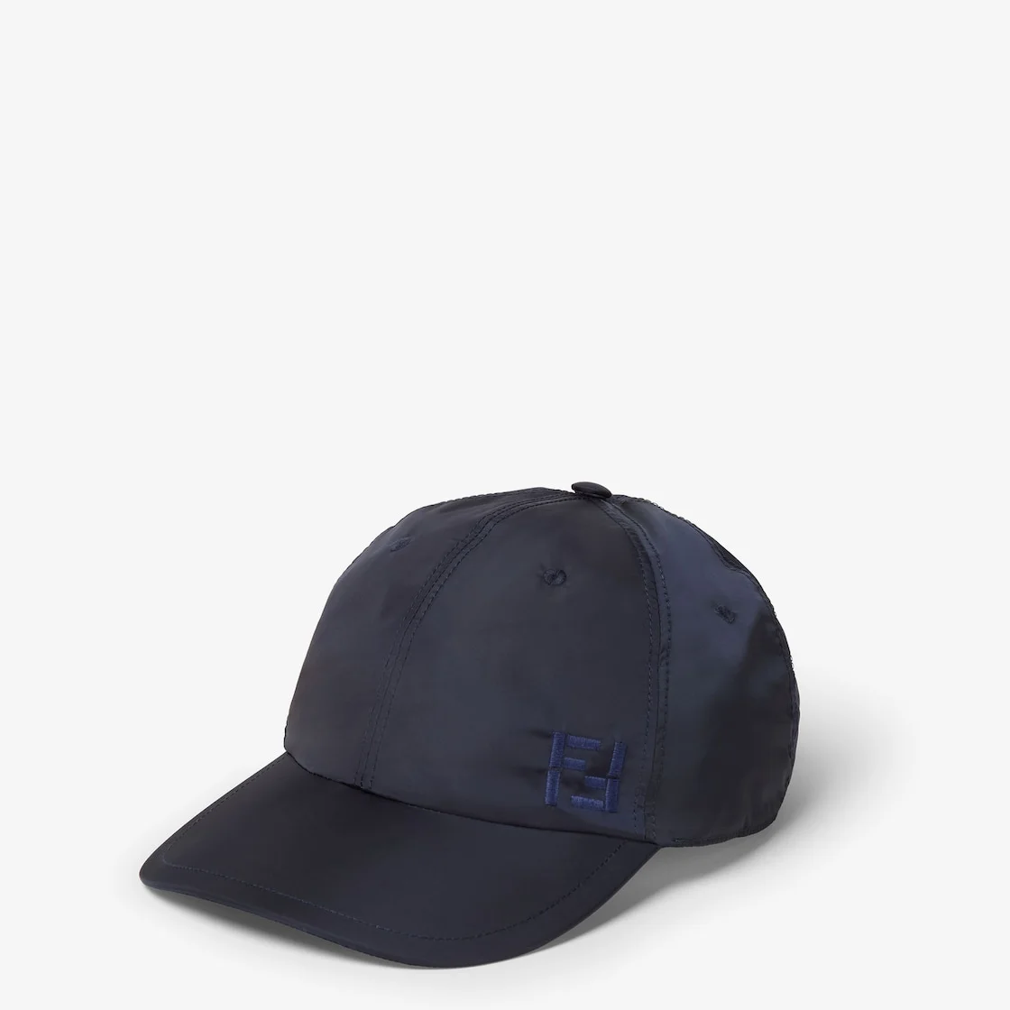 Dark blue waterproof nylon baseball cap with semi-stiff peak. Customized with a matching FF logo embroidered on the front. Made in Italy Composition: 100% polyamide, lining: 100% cotton Product Code: FXQ230AWTOF1WWO
