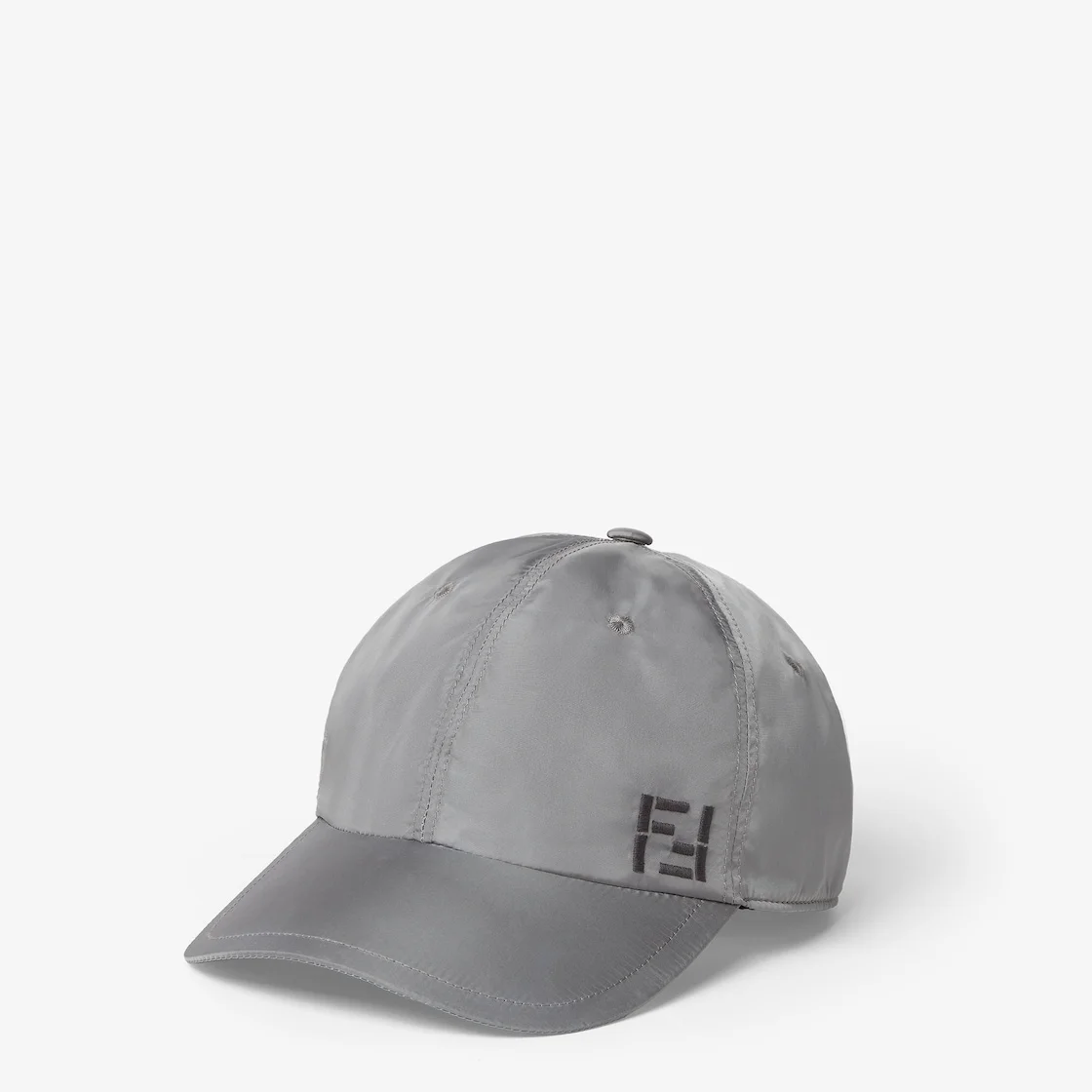 Gray waterproof nylon baseball cap with semi-stiff peak. Customized with a matching FF logo embroidered on the front. Made in Italy Composition: 100% polyamide, lining: 100% cotton Product Code: FXQ230AWTOF0RTU