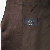 Single-breasted tailored blazer. Chest pocket and welt pockets on the sides. Front fastening with double button. Lined. Made of brown wool crepe. Finished with tone-on-tone silk lapels. Made in Italy Composition: 55% polyester, 45% fleece wool, 100% silk, lining: 100% cupro Size worn: 48 IT. The model is 188 cm tall Product Code: FJ0980AOYIF0TY8