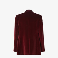 Single-breasted tailored blazer. Chest pocket and welt pockets on the sides. Center slit at the back. Front fastening with double button. Lined. Made of burgundy shaved cotton velvet. Finished with tone-on-tone silk lapels. Contrasting micro FF lining. Made in Italy Composition: 100% cotton, 78% silk, 22% polyester, lining: 100% cupro, secondary lining: 65% polyester, 35% cotton Product Code: FJ0980AVY1F0HM6