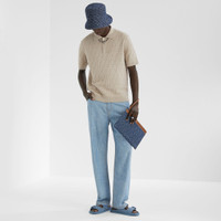 Straight-cut, regular-fit, five-pocket pants. Embellished with customized rivets and buttons. Concealed zipper closure. Width at the hem: 22 cm (8.7 inches). Made of light blue washed cotton Chambray. Customized with contrasting stitching and blue logo patch on the back. Palladium-finish metalware. Made in Italy Composition: 100% cotton Size worn: 48 IT. The model is 186 cm tall Product Code: FLP285AUWXF0LQ0
