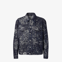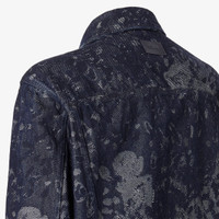 Oversized jacket with shirt collar and patch pockets on the chest. Unlined. Button closure. Made of a blue denim fabric with all-over Falena Drops jacquard motif. Embellished with logo buttons and leather patch with embossed Fendi Roma lettering on the back of the collar. Palladium-finish metalware. Made in Italy Composition: 100% cotton Product Code: FW0428AW1BF0QA2