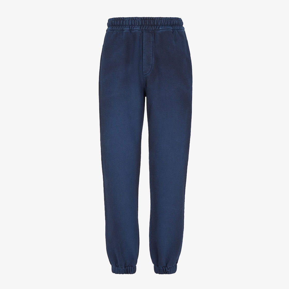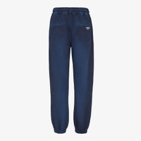 Joggers with stretch insert at the waist and ankle. Side pockets and welt pockets on the back. Made of blue washed, pure cotton. Finished with palladium-colored metal Fendi Roma lettering on the back pocket. Made in Italy Composition: 100% cotton, buttons: 100% mother of pearl Size worn: 48 IT. The model is 189 cm tall Product Code: FB0942APM9F0QC7