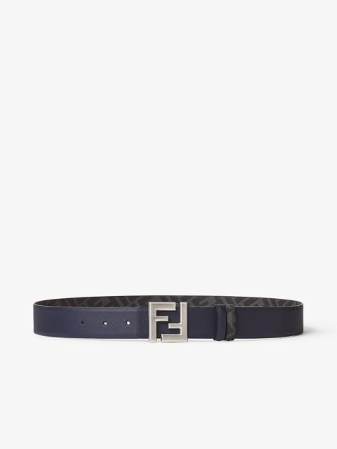 Reversible belt with thin FF Squared buckle. Made of smooth matt brown leather. Dark brown FF canvas underside. Metal accessories in a brushed gold finish. Made in Italy Composition: 100% calfskin, inside: 49% polyurethane, 28% cotton, 23% polyester Product Code: 7C0541ASIWF1S9U