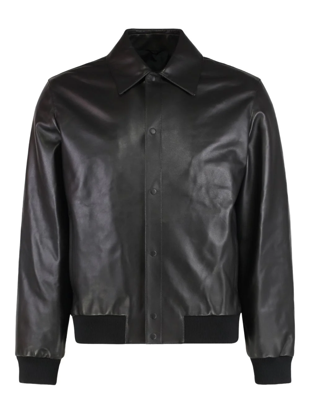 leather blouson jacket Highlights - Black - Textured - Ribbed hem - Button fastening - Point collar - Back lettering Made in Italy Composition Outer: Lambskin 100%, Cattle Horn 100%, Wool 88%, Polyamide 10%, Elastane 2% Lining: Cupro 100% Washing instructions Specialist Cleaning
