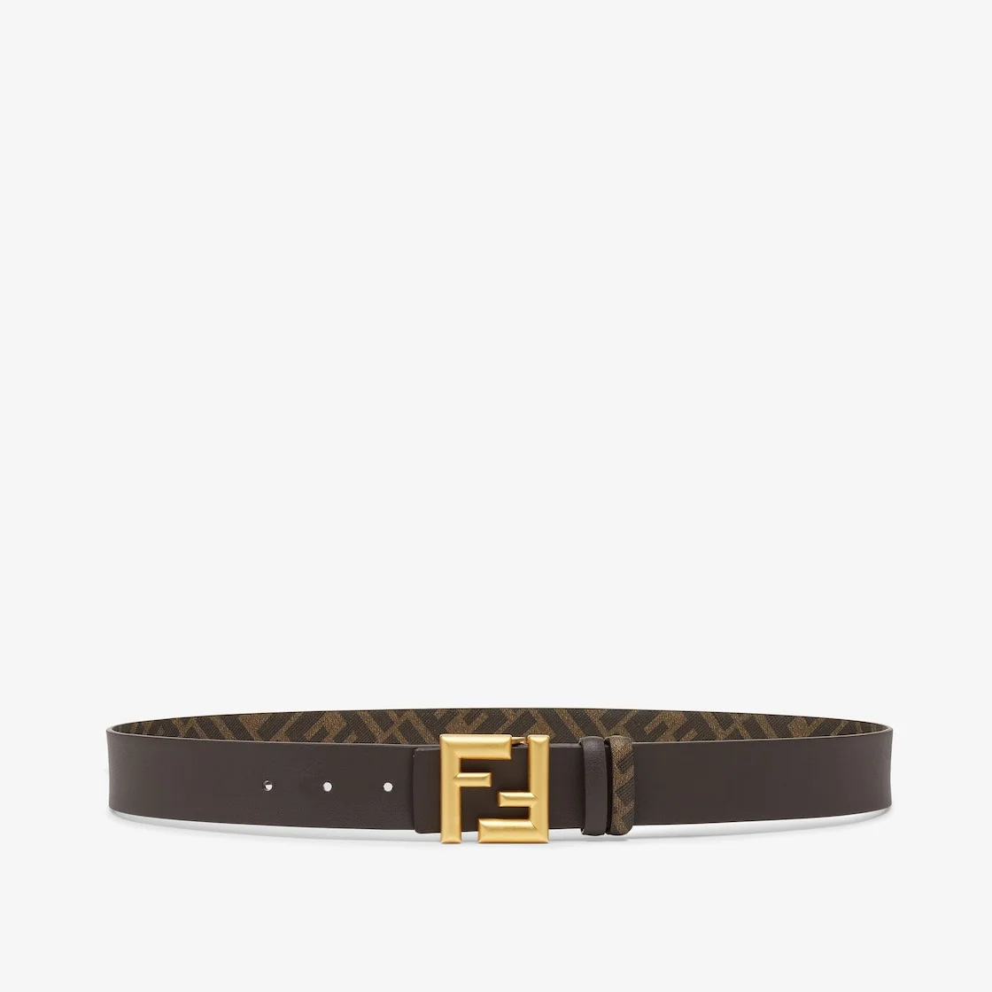 Reversible belt. FF Rounded buckle with stud closure. Made from brown leather. Brown FF canvas lining. Metal accessories in a vintage, frosted gold finish. Made in Italy Composition: 100% calfskin, inside: 49% polyurethane, 28% cotton, 23% polyester Product Code: 7C0488ASIWF1Q1T
