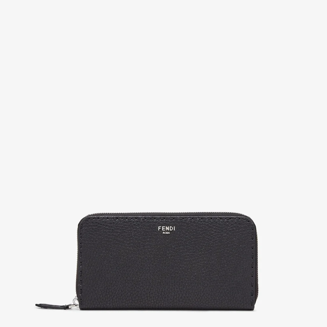 Wallet with zipper. Organized into three gusseted compartments with eight card slots and a zipper pocket. Made of black Cuoio Romano leather. Embellished with Fendi Roma lettering and edges finished with hand-sewn Selleria stitching. Palladium-finish metalware. Made in Italy Composition: 100% calf leather, inside: 62% cotton, 38% polyurethane Product Code: 7M0210AP3BF0GXN