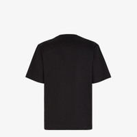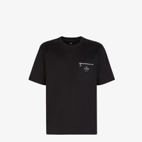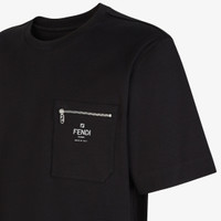 Short-sleeved, crew-neck, oversized T-shirt. Made of 100% cotton in black. The breast pocket is embellished with a small printed Fendi Roma label and zipper with a Fendi O'Lock slider. Made in Italy Composition: 100% cotton, 1 button: mother of pearl Fit: Loose Size worn: 48 IT. The model is 186 cm tall Product Code: FY0936ARYRF0QA1