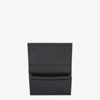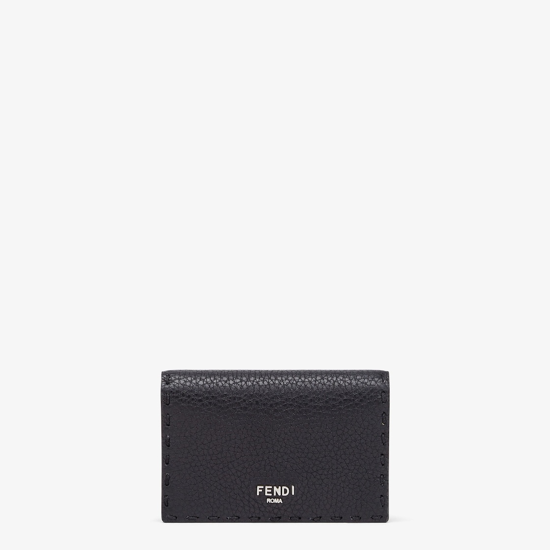 Card holder with flap, one slot and a central pocket. Made of black Cuoio Romano leather. Embellished with Fendi Roma lettering and edges finished with hand-sewn Selleria stitching. Palladium-finish metalware. Made in Italy Composition: 100% calf leather, inside: 62% cotton, 38% polyurethane Product Code: 7M0222AP3BF0GXN