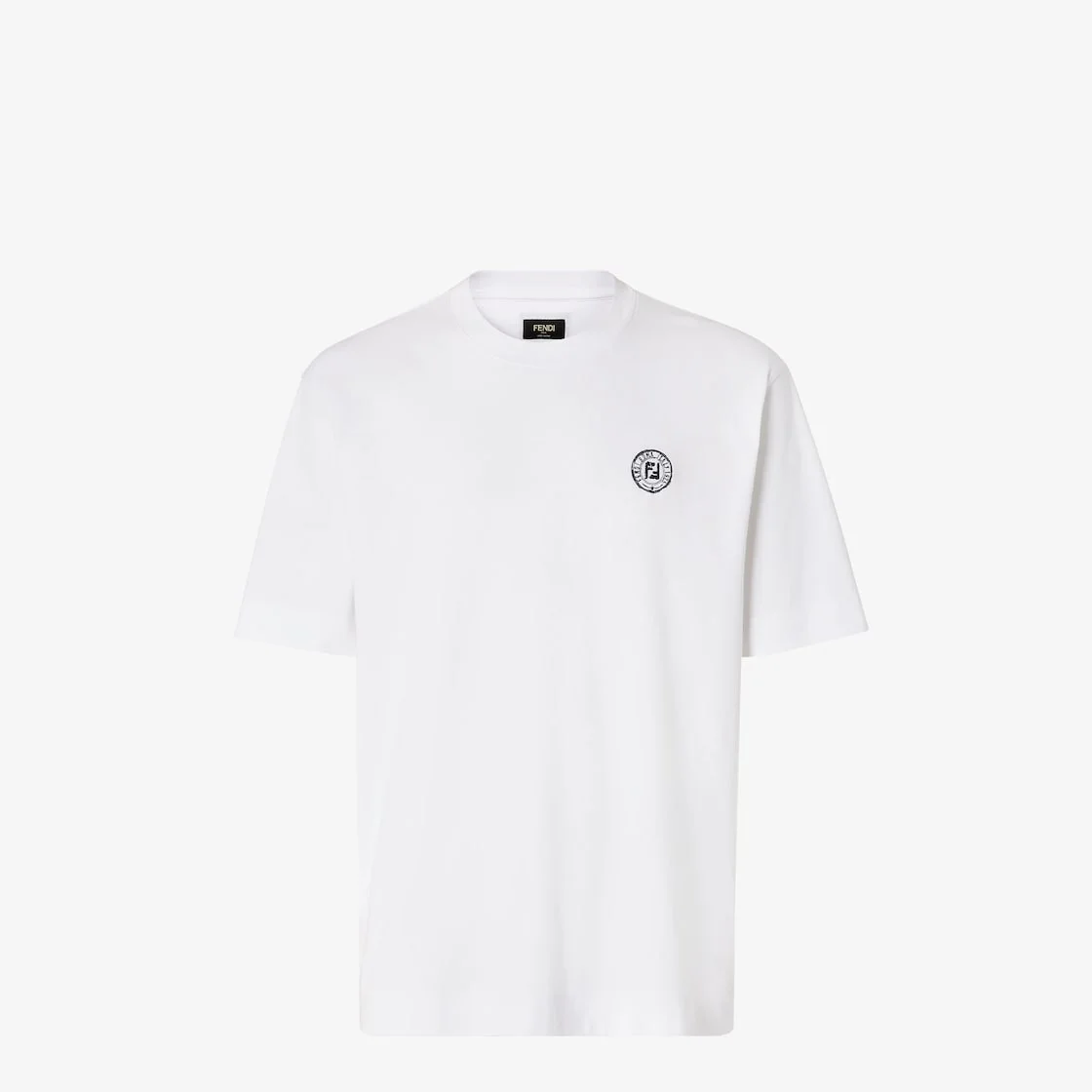 Slim-fit short-sleeved crew-neck T-shirt. Made of 100% cotton in white. Embellished with a small, contrasting FF Postcards logo printed on the chest. Made in Italy Composition: 100% cotton, 1 button: mother-of-pearl Size worn: 48 IT. The model is 186 cm tall Product Code: FY1319AV0HF0QA0