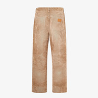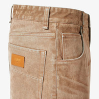 Straight-cut, regular-fit, five-pocket pants. Embellished with customized rivets and buttons. Concealed zip fastening. Width at the hem: 22 cm. (8.7 inches). Made of brown overdyed denim. Embellished with leather strap at the back with embossed Fendi Roma lettering. Palladium-finish metalware. Made in Italy Composition: 100% cotton Size worn: 48 IT. The model is 188 cm tall Product Code: FLP285AT2KF0TZ8
