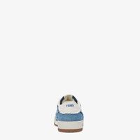 Fendi Match lace-up sneakers. Made of dark blue, light blue and white denim. Embellished with hand-frayed edges. Rubber sole with Fendi lettering on the side. Made in Italy Composition: 65% Cotton, 35% Polyester, 100% Calfskin, interior: 69% Polyester, 28% Polyamide, 3% Elastane Model height: null Size worn: null Product Code: 7E1495AMF1F1JID