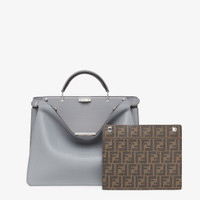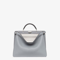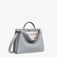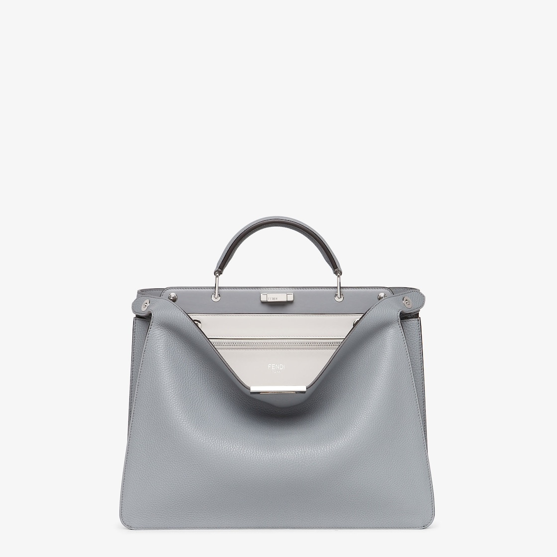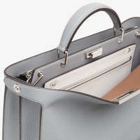 Medium iconic Peekaboo ISeeU bag, made of gray Cuoio Romano leather. The interior is organized into two compartments divided by a stiff partition, the front features the iconic twist lock, and there is a zip fastening on the back. The removable interior pocket is made of light gray leather on one side and FF fabric on the other. Palladium-finish metalware. Can be carried by hand or on the shoulder thanks to the handle and adjustable, detachable shoulder strap. Made in Italy Composition: : 100% calf leather, inside: 100% calf leather, 90% polyester, 10% polyurethane Model height: null Size worn: null Measurements: - Height: 34 cm - Depth: 12 cm - Width: 38 cm - Weight: 1.2 kg Product Code: 7VA529AFC3F1HR1