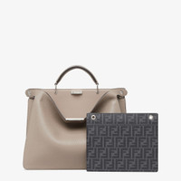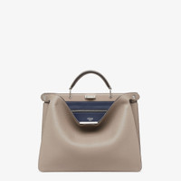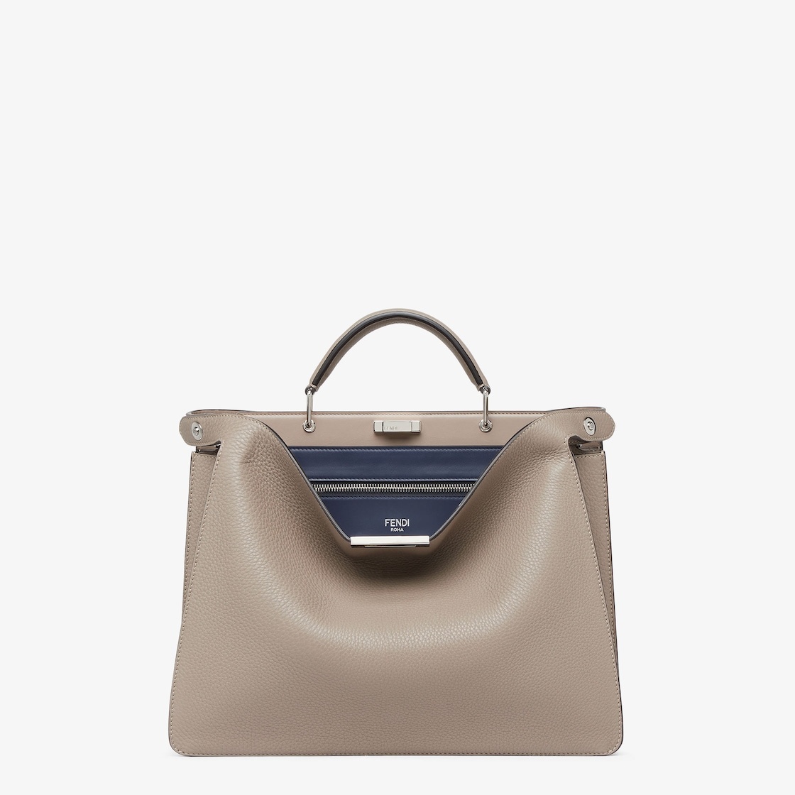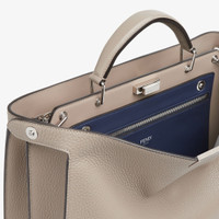 Medium Peekaboo ISeeU bag made of beige Cuoio Romano leather. The interior is organized into two compartments divided by a stiff partition, the front features the iconic twist lock, and there is a zipper closure on the back. The removable interior pocket is made of dark blue leather on one side and FF fabric on the other. Palladium-finish metalware. Can be carried by hand or on the shoulder thanks to the handle and adjustable, detachable shoulder strap. Made in Italy Composition: : 100% calf leather, inside: 100% calf leather, 90% polyester, 10% polyurethane Model height: null Size worn: null Measurements: - Height: 34 cm - Depth: 12 cm - Width: 38 cm - Weight: 1.2 kg Product Code: 7VA529AFC3F1JMJ