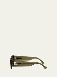 Fendi "FF Squared" rectangle sunglasses in acetate and nylon Lens/bridge/temple (in mm): 54-17-145 Solid-color lenses Saddle nose bridge FF Squared logo on the temples Thick, tapered arms Curved temple tips Acetate/nylon 100% UVA/UVB protection Made in Italy Proposition 65 warning for California residents This product contains perfluoroalkyl and polyfluoroalkyl substances (PFAS). For more information, please visit the manufacturer’s website. Online Inquiries: BGS21_NELCB| Store Inquiries: #4881550