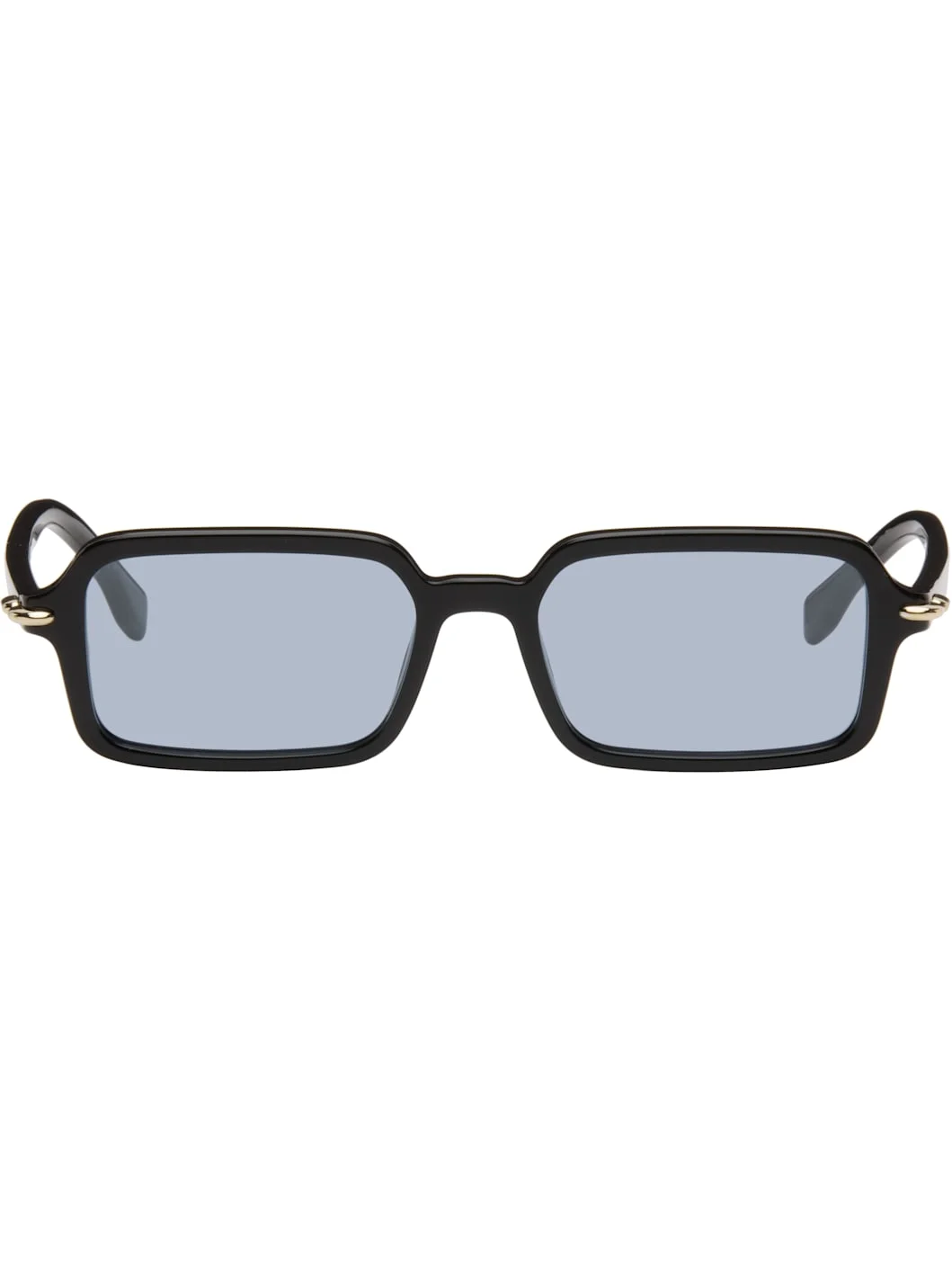 Rectangular acetate-frame sunglasses. · Blue lenses · 100% UVA/UVB protection, category 3 · Integrated nose pads · Graphic hardware and logo engraved at temples · Includes pouch · Size: 51.17 140 Supplier color: Shiny black/Blue mirror Acetate. Made in Italy 252693M134004