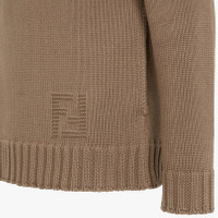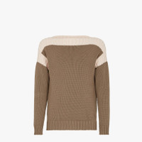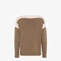 Pullover with boat neck and long sleeves. Rib knit finish on cuffs and hem. Made of brown cotton and cashmere knit. The yoke and armhole are highlighted by fisherman’s rib knit in pink. Embellished with matching-color FF inlay detail on the hem. Made in Italy Composition: 85% Cotton, 15% Cashmere, 1 button: Mother of pearl Product Code: FZY476AIBBF1GJS