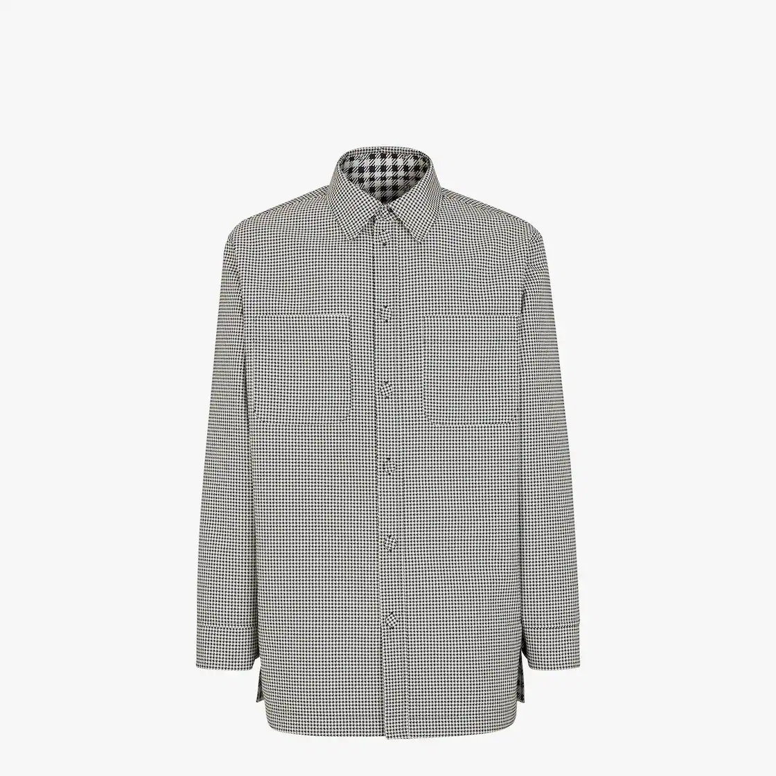 Shirt-style reversible jacket with button fastening. Made of printed nylon with a houndstooth motif on one side and black and white gingham pattern on the other. The outer shell is finished with patch pockets on the chest. Made in Italy Composition: : 100% Polyester Model height: null Size worn: null Product Code: FW1077AL60F0ZE7