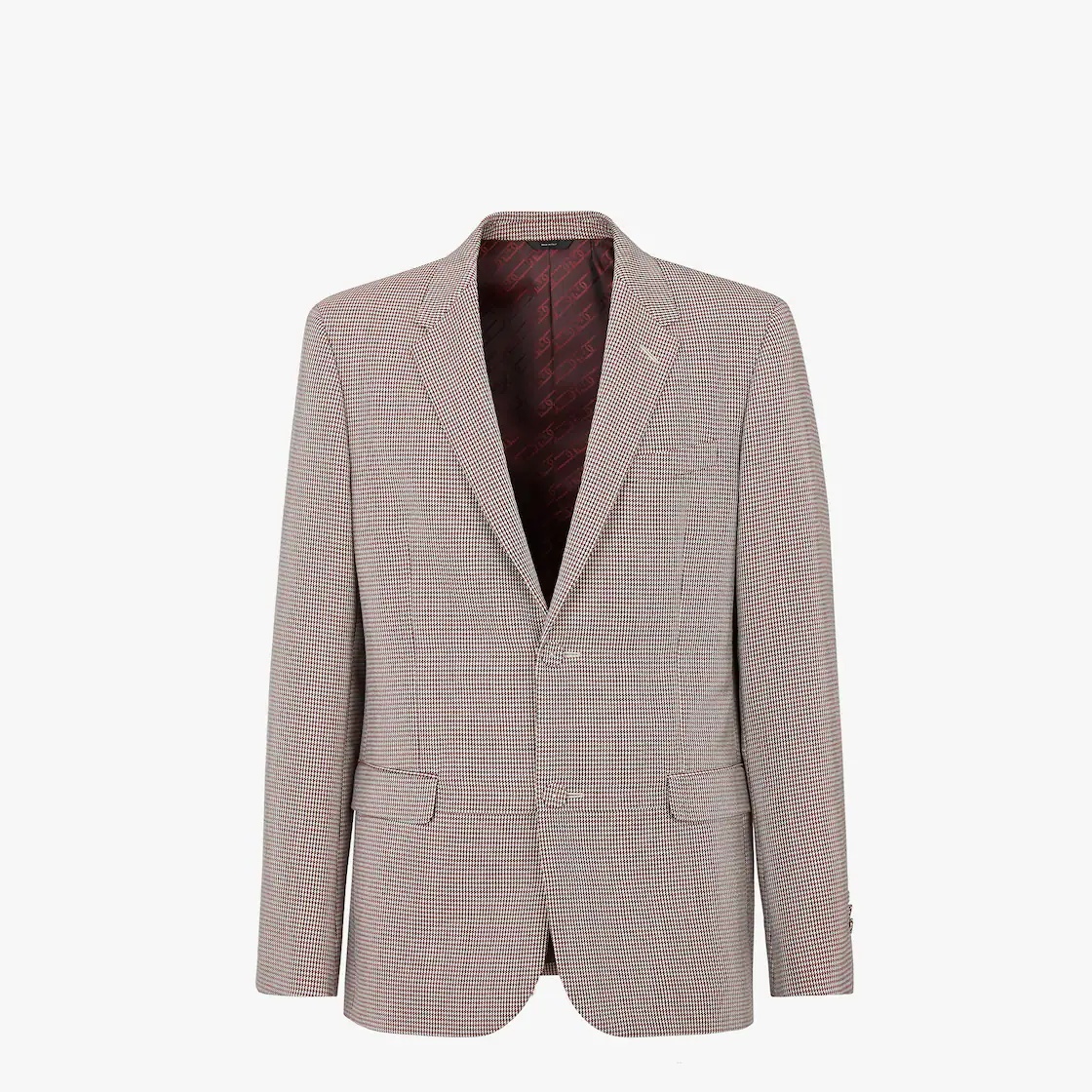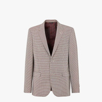 Single-breasted blazer with lapels, breast pocket and flap pockets. Fastened with two matching colored buttons. Lined. Made of wool with beige and red houndstooth check motif. Made in Italy Composition: : 97% Fleece wool, 3% Polyester, lining: 100% Cupro Model height: 187 cm Size worn: 48 IT Product Code: FJ0686AL5BF1I8T