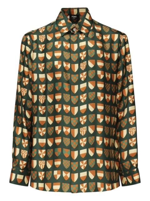 crest-print shirt