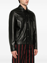 leather jacket Highlights - Black - Front button fastening - Two chest flap pockets - Two side slit pockets - Buttoned cuffs Made in Italy Composition Lining: Cupro 100% Outer: Calf Leather 100% SIZE & FIT Model measurements Height 6 ft 2 in(1.87 m) Bust/Chest 37.79 in(96 cm) Hips 37.79 in(96 cm) Waist 30.31 in(77 cm) FittingInformation Designed for a relaxed fit, this piece allows for comfort and movement when worn Soft leather has a supple and smooth construction offering some flexibility