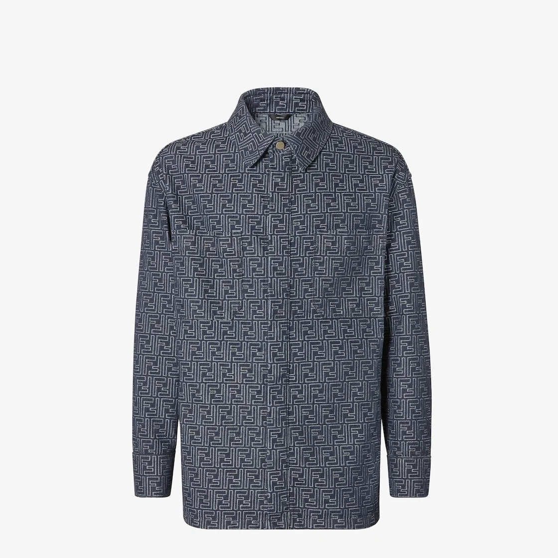 Straight-cut, long-sleeved jacket. Pointed collar and slightly dropped shoulders. Patch pockets on the chest and side welt pockets. Snap closure. Made of washed dark blue FF Jacquard denim fabric. Made in Italy Composition: 100% cotton, 65% polyester, 35% cotton Size worn: 48 IT. The model is 186 cm tall Product Code: FW1321AUX4F0BUZ