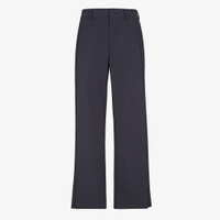 Flowing tailored pants. Side pockets and welt pockets on the back. Belt loops at the waist. Concealed zipper closure. Width at the hem: 27.5 cm (10.8 inches). Made of midnight blue wool crepe. Designed with a symmetric pleated pattern at the hips. Made in Italy Composition: 55% polyester, 45% fleece wool, 100% viscose, 1 button: mother of pearl Size worn: 48 IT. The model is 189 cm tall Product Code: FB0595ASCBF1AJR