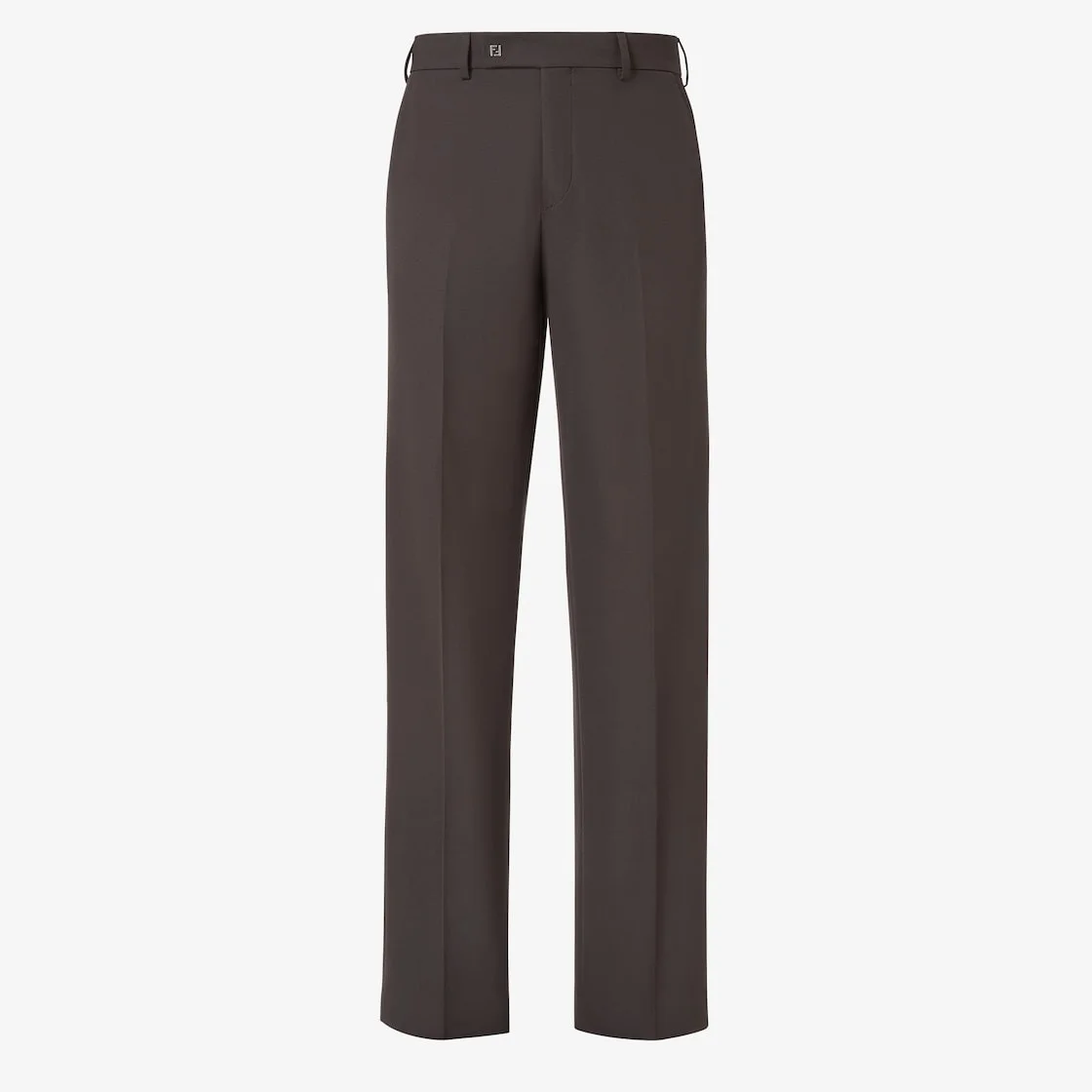 Cigarette pants with side pockets. Belt loops on the waistband and trouser crease. Concealed zipper and hook closure. Width at the hem: 22 cm (8.7 inches). Made of brown wool crepe. Customized with a button-effect palladium-finish metal micro FF logo applied at the waist. Made in Italy Composition: 55% polyester, 45% fleece wool Size worn: 48 IT. The model is 188 cm tall Product Code: FB1089ASCBF0TY8