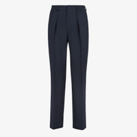 Cigarette pants with elastic waistband and pleats on the front. Pockets on the sides and welt pocket on the back. Belt loops and pressed crease on the leg. Concealed zipper closure. Made of blue wool mini cavalry twill. Made in Italy Composition: 59% Fleece wool, 41% Polyester Fit: Regular Product Code: FB0895AL5AF0CRH