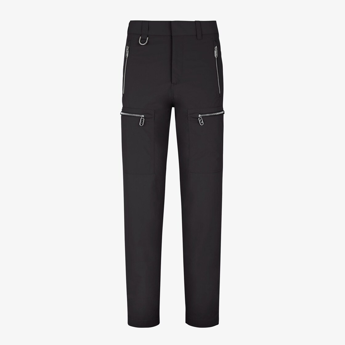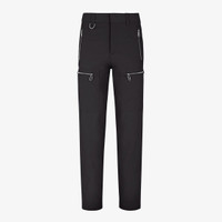 Straight-cut cargo pants. Side straps for waist adjustment with snaps. Zipper side pockets and zipper patch pockets on the leg. Concealed zipper closure. Made of black tech nylon. All the pockets are embellished with a Fendi O’Lock metal slider with palladium finish. Made in Italy Composition: 100% Polyamide, lining: 65% Polyester, 35% Cotton Model height: 190 cm Size worn: 48 IT Product Code: FB0824AM7TF0QA1
