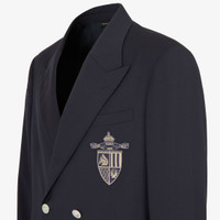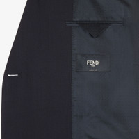 Straight-cut, double-breasted jacket with center back vent. Peak lapels, breast pocket and welt pockets. Matching micro FF jacquard lining. Closed with customized metal buttons. Made of dark blue lightweight wool fabric. The Fendi Crest, embroidered and applied on the chest, is the Fendi Club emblem designed by Silvia Venturini Fendi to celebrate the brand’s centennial. An exclusive symbol of a family tradition that has redefined the concept of elegance and sport. Made in Italy Composition: 100% fleece wool, lining: 100% cupro Size worn: 48 IT. The model is 189 cm tall Product Code: FJ0709AU6GF0CRH